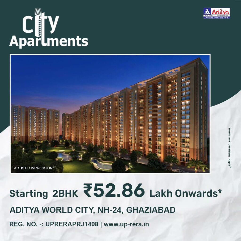 Aditya World City, located on NH-24 in Ghaziabad, is a large-scale GDA-approved integrated township spread across 185 acres. Developed with modern urban planning, the project offers the perfect balance of comfort, connectivity, and lifestyle.